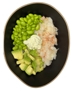 POKE POKKAI Base di riso bianco sushi , tartare di scampi del mediterraneo, avocado Haas, edamame e philadelphia, sopra salsa ponzu home made e lime. | € 18.00 | |||